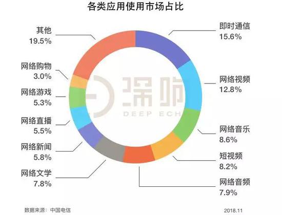 据中国互联网网络信息中心(CNNIC)发布的第43次《中国互联网络发展状况统计报告》指出,网络音频类应用(指可以收听网络电台等音频类节目的互联网应用类型)的使用时长占比达7.9%,位居第五位,前一位是占比8.2%的短视频,后一位是占比为7.8%的网络文学。